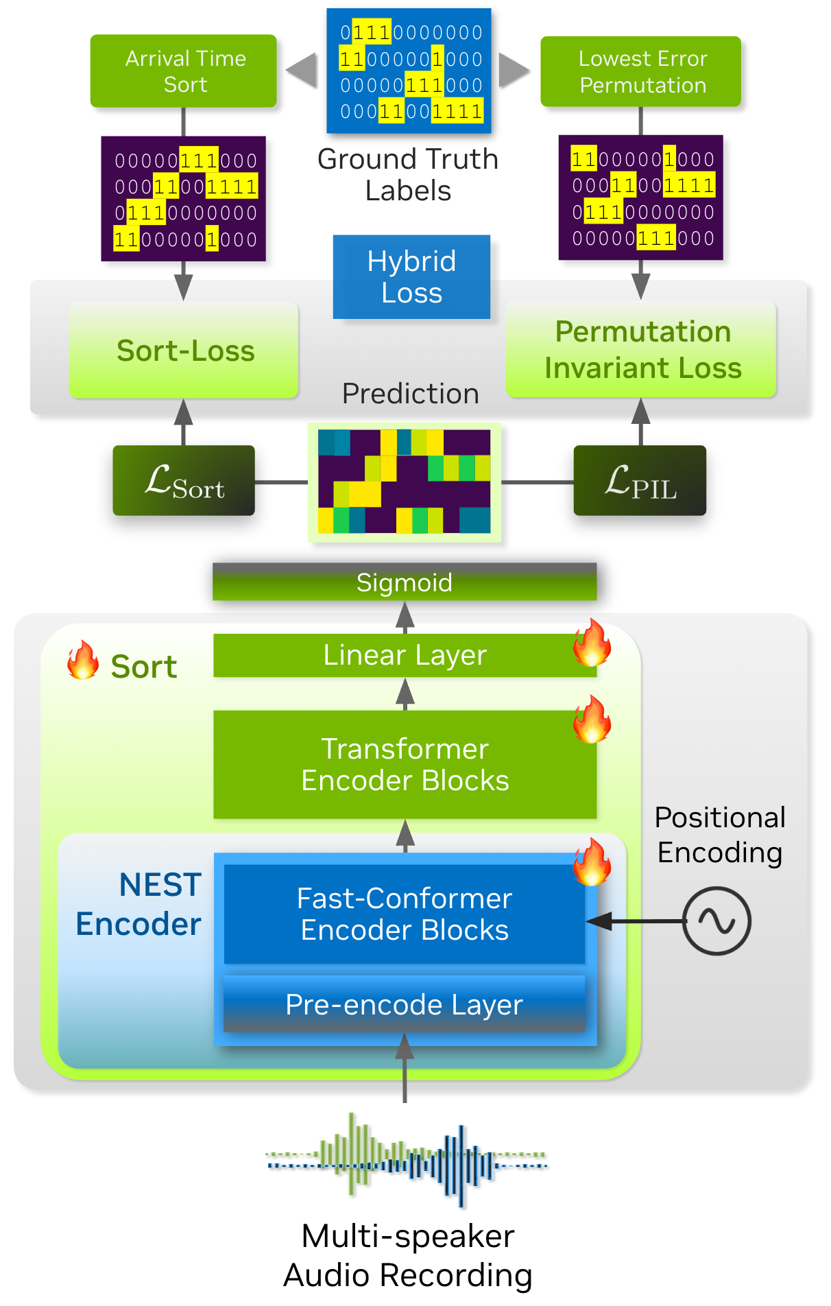 In this tutorial, we will walk you through the process of training a Sortformer diarizer model with toy dataset. Before starting, we will introduce the concepts of Sort-Loss calculation and the Hybrid loss technique.