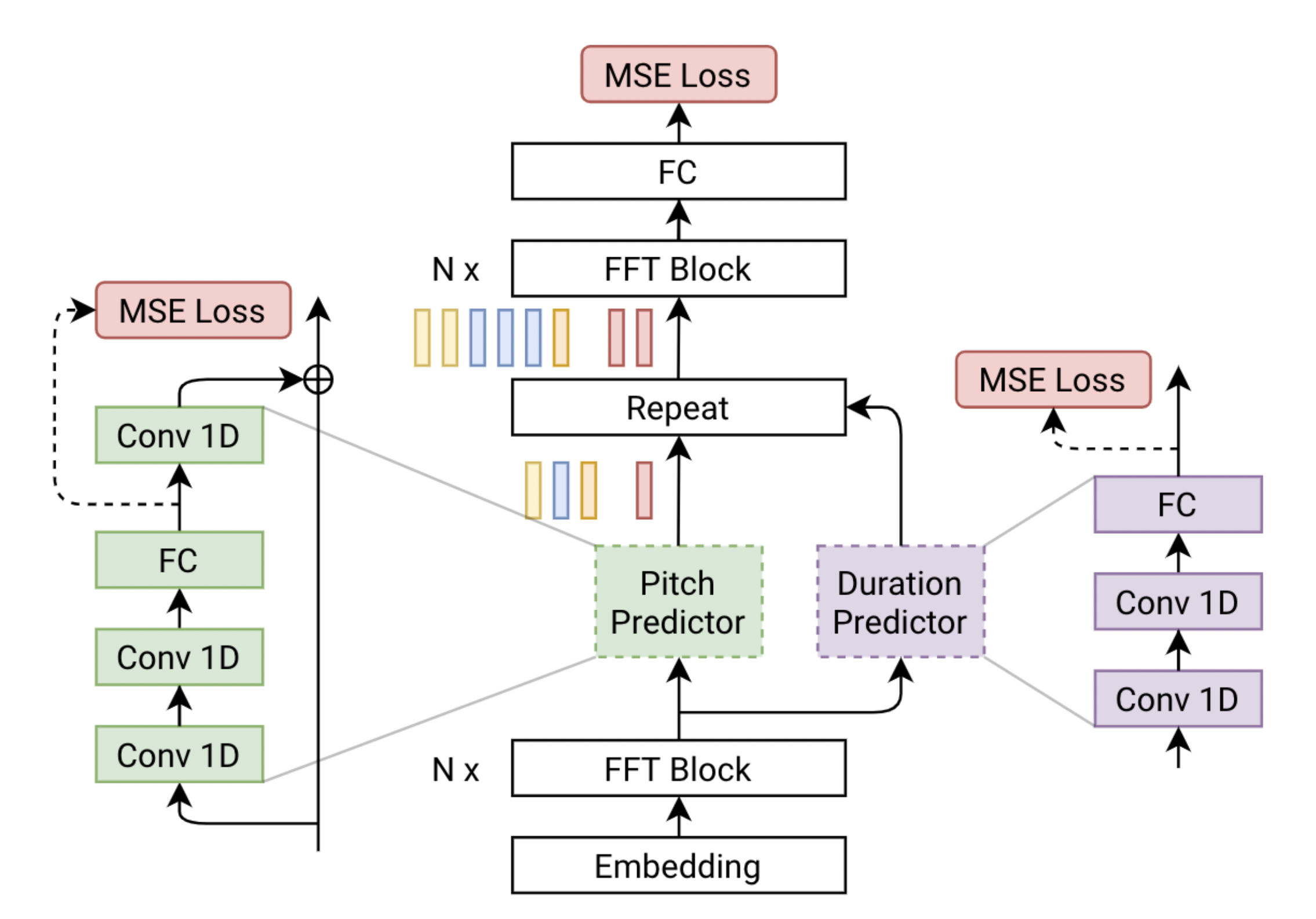 FastPitch is a fully-parallel text-to-speech synthesis model based on FastSpeech, conditioned on fundamental frequency contours. The model predicts pitch contours during inference. By altering these predictions, the generated speech can be more expressive, better match the semantic of the utterance, and in the end more engaging to the listener. Uniformly increasing or decreasing pitch with FastPitch generates speech that resembles the voluntary modulation of voice. Conditioning on frequency contours improves the overall quality of synthesized speech, making it comparable to the state of the art. It does not introduce an overhead, and FastPitch retains the favorable, fully-parallel Transformers architecture, with over 900x real-time factor for mel-spectrogram synthesis of a typical utterance. The architecture of FastPitch is shown below. It is based on FastSpeech and consists of two feed-forward Transformer (FFTr) stacks. The first FFTr operates in the resolution of input tokens, and the other one in the resolution of the output frames. Please refer to [TTS-MODELS5] for details.